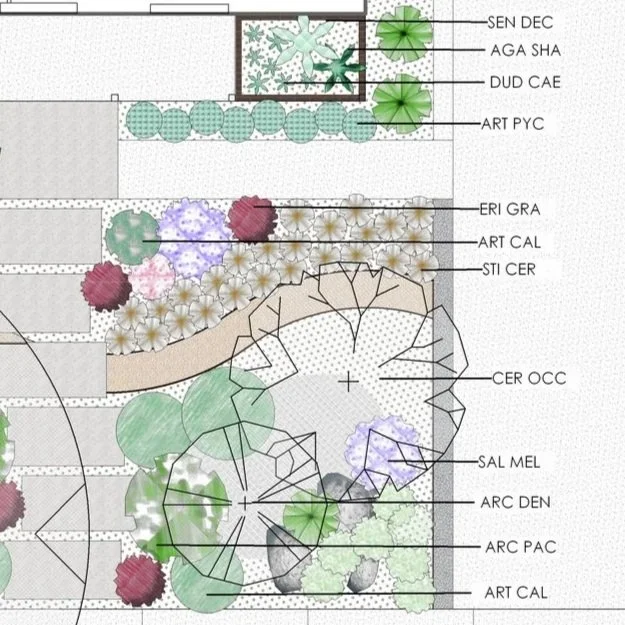 This plan works in coordination with the plant palette to guide placement and ensure the intended composition of the landscape is achieved.